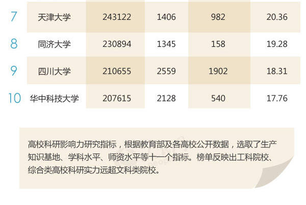 在科研影響力中,浙江大學、上海交通大學、北京大學、等高校位居前十,但余清楚表示,從這份榜單中可以明顯看出,工科院校和綜合院校的科研實力遠遠超過文科類院校。