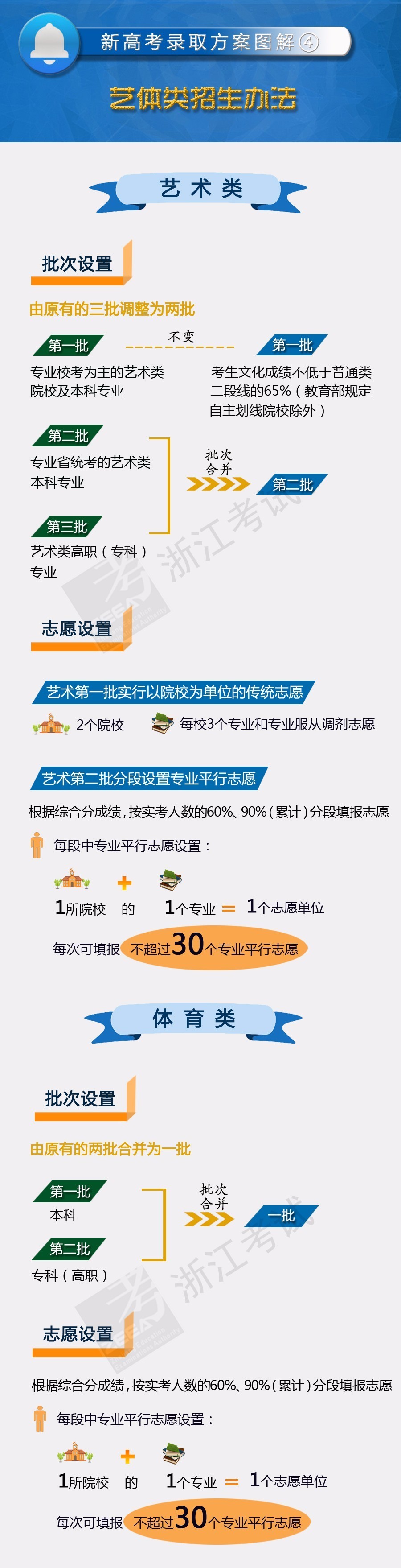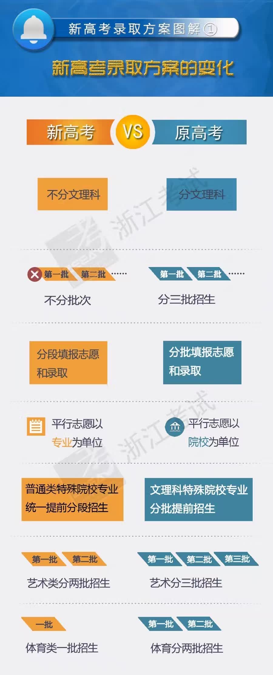 2017年浙江省新高考錄取分普通類、藝術類、體育類。一圖了解新高考錄取方案的變化: