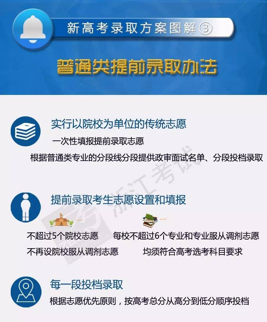 此外,高水平大學自主選拔、高校專項計劃、高水平藝術團、地方專項計劃,統一在提前錄取的最后一天進行,其最低文化要求不低于浙江省第一段分數線。