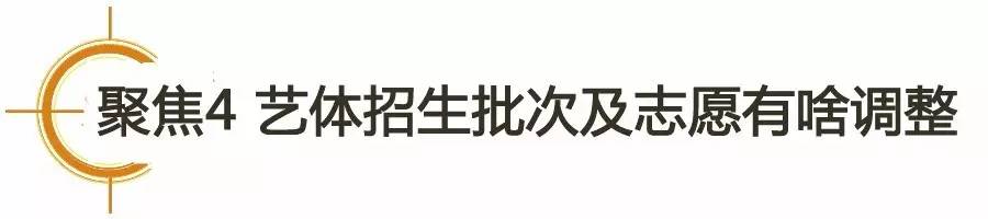 新高考藝體類招生錄取批次有調整。其中,藝術類第一批(以專業校考為主)實行傳統志愿;藝術類第二批合并專業省統考的原二、三批,體育類原兩批合并為一批錄取,均實行專業平行志愿,分段填報志愿和錄取。