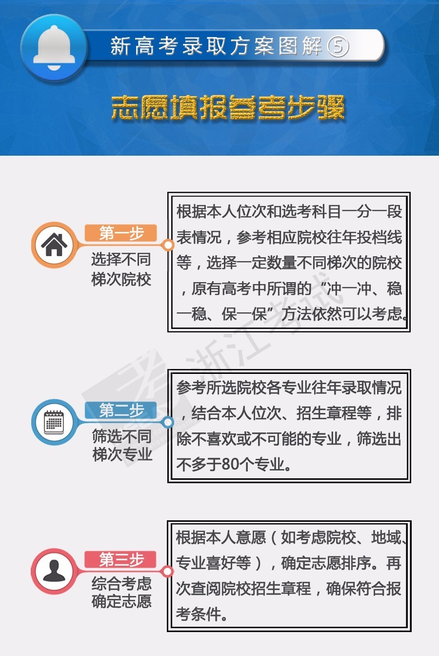 按照新的錄取辦法,各類別考生該如何選報專業平行志愿呢?以下這三個步驟,可以作為選報志愿的參考。注意,僅供參考噢!