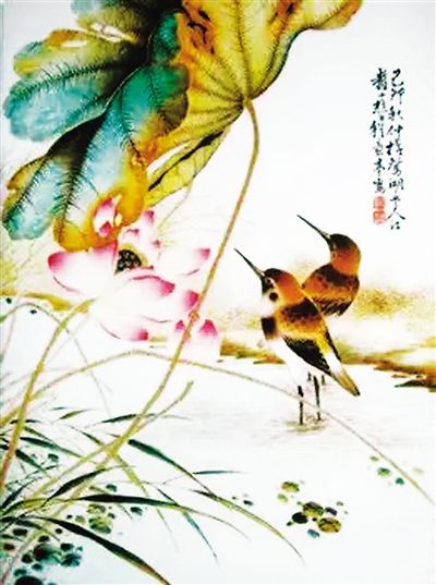 荷塘水鳥(瓷板畫)