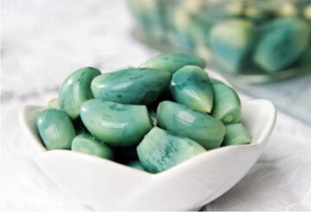 翡翠碧玉臘八蒜。泡臘八蒜是北方,尤其是華北地區的一個習俗。顧名思義,就是在陰歷臘月初八的這天來泡制蒜。做法極其簡單,將剝了皮的蒜瓣兒放到一個可以密封的罐子、瓶子之類的容器里面,然后倒入醋,封上口放到一個冷的地方。慢慢地,泡在醋中的蒜就會變綠,最后會變得通體碧綠的,如同翡翠碧玉。