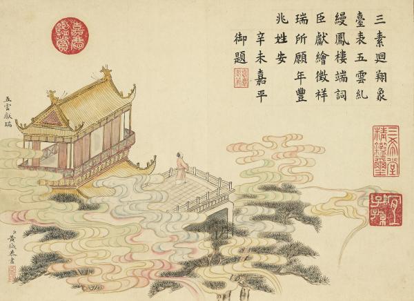 清黃鉞《五云獻瑞》,上有嘉慶御題。