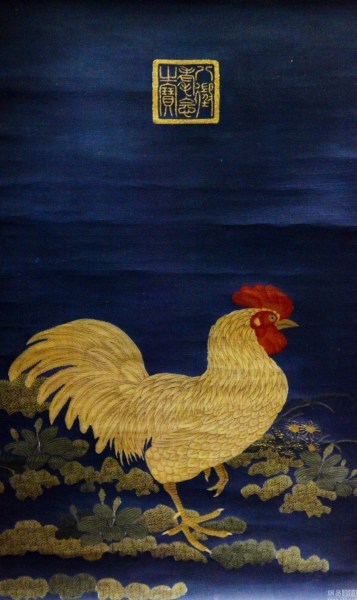 2017年1月8日,南京博物院,"錦繡雞"院藏雞文物展展品;清代緙絲雄雞圖軸。