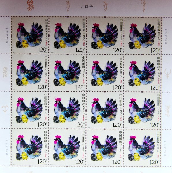 2017年1月8日,南京博物院,"錦繡雞"院藏雞文物展展品;2017年整版雞年紀(jì)念郵票。