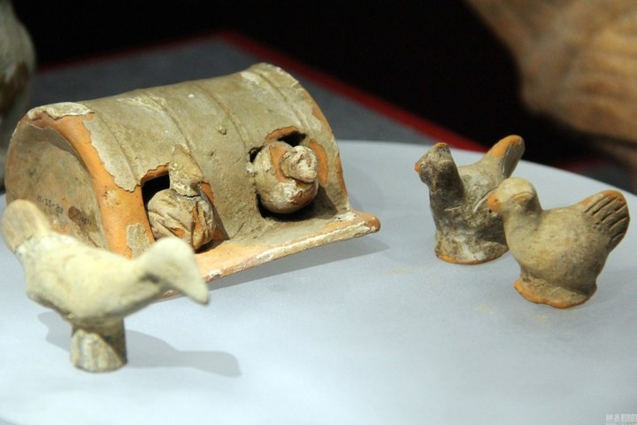 2017年1月7日,南京博物院"院藏雞文物展"現(xiàn)場(chǎng),東晉的雞首壺、雞首瓷罐、雞首執(zhí)壺、紅陶雞塒吸引眼球。