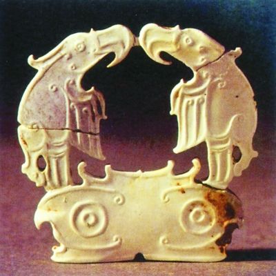 湖北天門市石家河遺址出土的虎座雙鷹玉飾