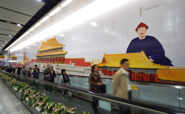 1月6日,市民從香港港鐵站一幅由香港特區政府康樂及文化事務署展示的“故宮全接觸”計劃海報前走過。呂小煒攝