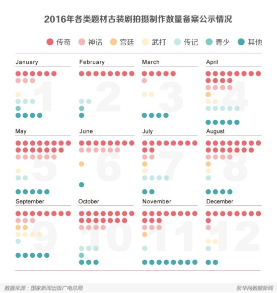 而進(jìn)入2017年,這一發(fā)展趨勢(shì)似乎并未減弱——根據(jù)國(guó)家新聞出版廣電總局網(wǎng)站上發(fā)布的信息顯示,今年1月,全國(guó)電視劇拍攝制作備案公示的劇目共103部,其中古代題材劇共21部,而這其中,歷史正劇不超過(guò)5部,其他則仍以傳奇、神話題材為主。