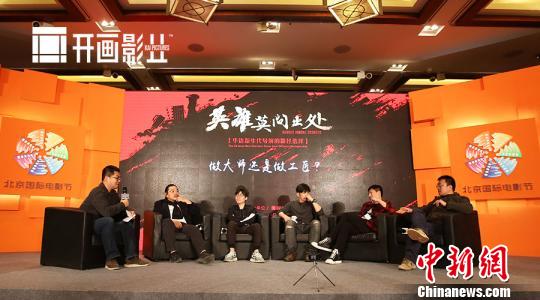 “英雄莫問出處——華語新生代導演的路徑選擇”活動19日舉行,共論電影產業人才培養。圖為楊超、田蒙、王嘯坤、高曉攀、相國強探討新導演成長。 曾鼐 攝