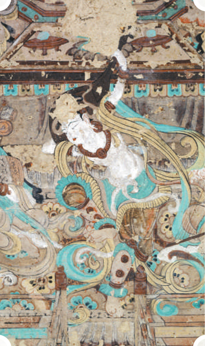 敦煌莫高窟第249窟,中原與西域風(fēng)格的飛天(西魏)。