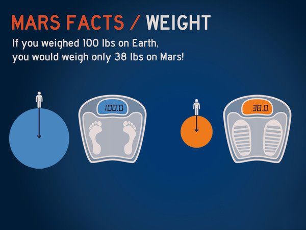 由于火星的引力比地球的小,在火星上,你的體重會比在地球上稱重減少62%。你可以在名為“Planets”的應用程序上量體重。你在地球上曾經舉起的最重的重量是多少?在火星上,你可能舉起一倍多!地球上的10磅相當于火星上的4磅。