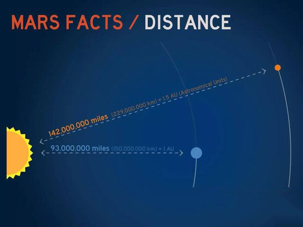 大約每兩年火星和地球就會最為接近。最近距離大約是3300萬英里,最遠距離是2.49億英里。這是由于火星和地球都具有橢圓軌道,并且火星的軌道更為傾斜。同時,它們的公轉速度也是不同的。