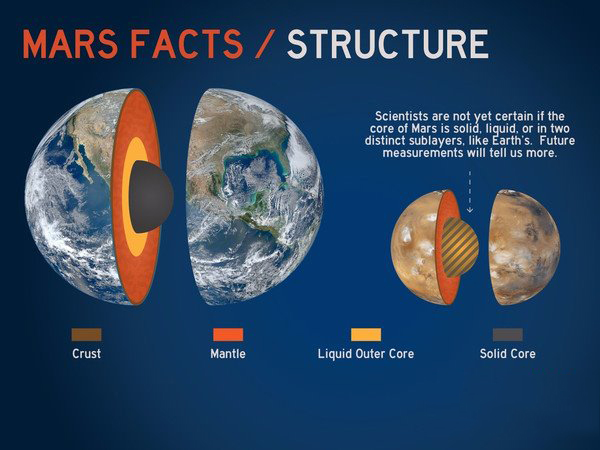 你可能知道洋蔥有好多層,但你是否知道火星也如此呢?像地球一樣,火星也有地殼,地幔和地核。組成物質也和地球上的一樣——鐵和硅酸鹽。