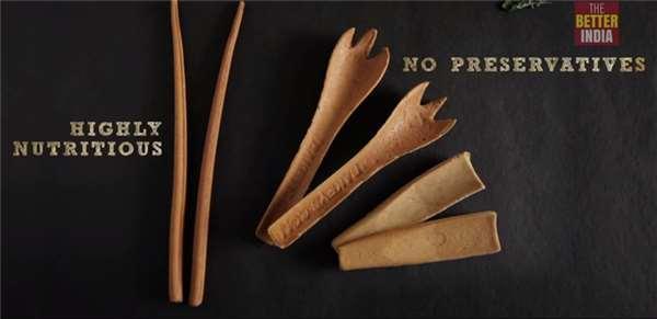 于是他創辦了名為“Bakey’s Food Private Limited”的公司,開始研發兼具實用性又不會破壞自然生態與人體健康的可食用餐具。經過了多次的實驗以后,讓他發現到以高粱、米和全麥粉制成的硬餅干餐具,能在熱湯里使用20分鐘。