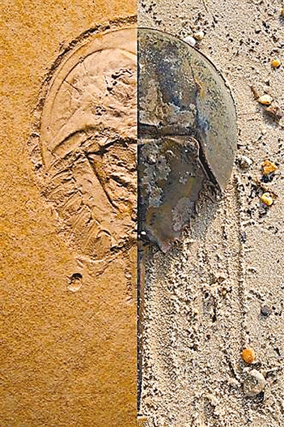 把鱟的化石和現生鱟對比,可看出它的外形基本沒變。