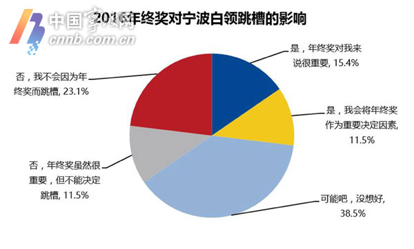 作為職業(yè)收入中的一塊重要組成部分,年終獎(jiǎng)對(duì)于白領(lǐng)們下一年度的職業(yè)變動(dòng)存在著一定影響。當(dāng)被問及是否會(huì)因?yàn)槟杲K獎(jiǎng)發(fā)放情況而選擇跳槽時(shí),26.9%的寧波白領(lǐng)明確表示會(huì),但也有34.6%的白領(lǐng)表示跳槽與否不受年終獎(jiǎng)的影響,此外有38.5%的白領(lǐng)表示不確定。