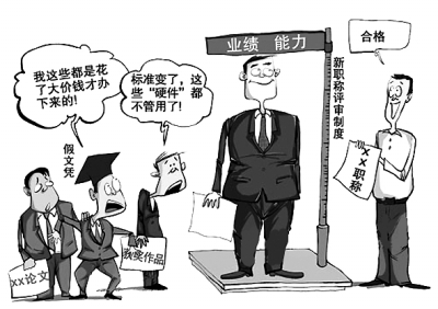 對于群眾詬病頗多的唯學歷、唯資歷、唯論文傾向,《意見》也作出了相應調整,提出合理設置職稱評審中的論文和科研成果條件,不將論文作為評價應用型人才的限制性條件。“對實踐性強、操作性強,研究屬性不明顯的職稱系列,可不作論文要求;探索以專利成果、項目報告、工作總結、工程方案、設計文件、教案、病例等成果形式代替論文要求;推行代表作制度,重點考察研究成果和創作作品質量,淡化論文數量要求。”《意見》同時還提出突出評價專業技術人才的業績水平和實際貢獻,對引進的海外高層次人才和急需緊缺人才以及艱苦邊遠和基層一線專業技術人員,放寬資歷、年限等條件限制。