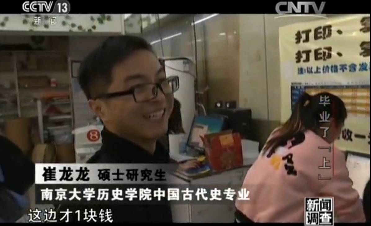 他叫崔龍龍,今年23歲,安徽蚌埠人。當初在考大學的時候,他就知道歷史專業的就業前景有可能并不樂觀,但因為自己從小對歷史就有濃厚的興趣,他還是選了這個專業。