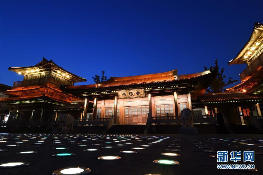 杭州段河邊的香積寺夜景。