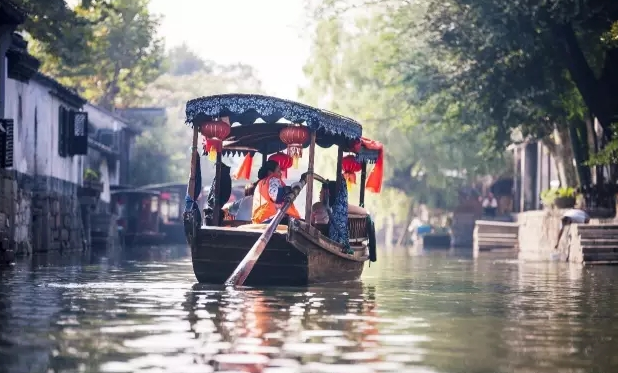 那別具風味的手搖船,是一定要坐一坐的。船夫施施然撐槳而來,泛舟而行,緩緩地蕩漾于這水鄉(xiāng)河流之中。耳邊是吳儂軟語的船歌,眼前是古鎮(zhèn)的秀美風光,叫人如何不沉醉!
