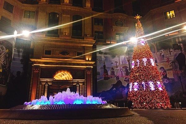 號稱臺北最高、最壯麗的圣誕樹,位于臺北文華東方酒店及文華精品噴水池廣場的圣誕樹,在歐式建筑的襯托下更有歐式氛圍