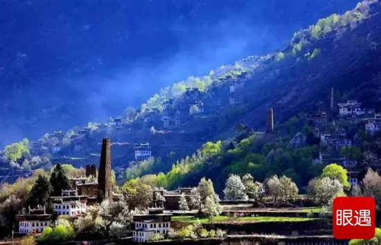 在四川甘孜藏族自治州的丹巴縣,有一個叫甲居藏寨的世外桃源,因為盛產美人,又稱“美人谷”。每到春天,千樹萬樹梨花開的盛景,就會把這里變成絕美仙境,所以又被《中國國家地理》評為“中國最美鄉村”。