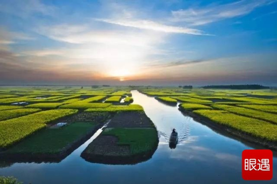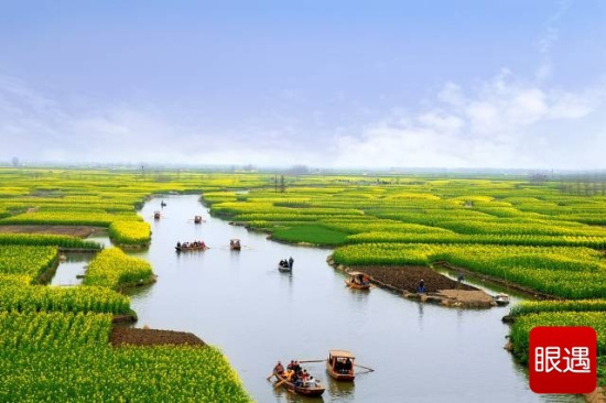 江蘇興化,以千島樣式的垛田景觀聞名遐邇。當地人把油菜花種植在湖中小島上,每到清明過后,油菜花就迎來最佳花期,藍天、碧水、金島織就了一派愜意悠閑的畫卷。泛舟其中,真正是“人在花中游”!