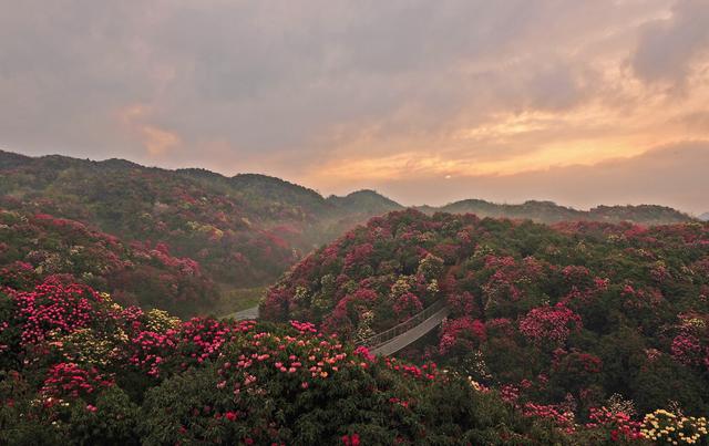 畢節(jié)百里杜鵑AAAAA風(fēng)景名勝區(qū)以"地球的彩帶、世界的花園"深受人們的喜愛(ài),特別是每年三月中旬到四月中旬的一個(gè)月的時(shí)間里,二十多種野生杜鵑花競(jìng)相開(kāi)放,繁花似錦,花色紅的似火,粉的嬌艷,白的素雅,或淡或濃。站在山頂極目眺望,漫山遍野都是花的海洋,令人心曠神怡。今年不看只能等待明年,有等待一年的遺憾。今生不看那真是一輩子的遺憾!