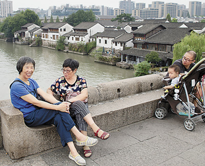 9月1日,人們?cè)诰┖即筮\(yùn)河上的拱宸橋小憩?!⌒氯A社記者 鞠煥宗攝