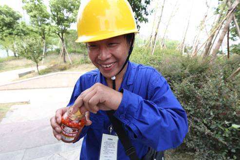 在外保電,沒有什么比能吃得上一口家鄉味更能讓人來得心安。對于路橋保電戰隊的100多名隊員來說,大部分值守人員都來自湖南,口味偏辣,而杭州本幫菜偏甜,怕隊員們吃不習慣,睿智的后勤保障組特意出發前在臺州采購了一批辣椒醬以備保電期間隊員們所需,值得一提的是,這批辣椒醬還是湖南產的。巡線休息時,何斌和馮勝磊兩位師傅打開辣椒醬就著小面包吃了起來,一臉心滿意足的樣子。