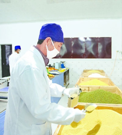 吳起縣桐寨村肥土地小雜糧合作社的員工正在為產品裝袋。本報記者 周夢爽攝/光明圖片