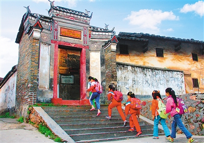 高大的紀念碑正對著的,就是長征源小學。周末,學校“紅娃樂隊”的學生正在訓練,幾十人身穿紅軍服、頭戴八角帽,情緒飽滿地吹奏《十送紅軍》。時而高亢、激越,時而凄婉、憂傷的曲調,將我們帶回82年前紅軍渡河長征的悲壯場景。