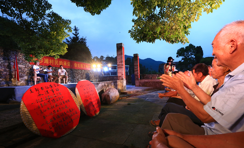 2015年7月,嶼頭鄉(xiāng)沙灘村履職承諾年中考評現場。