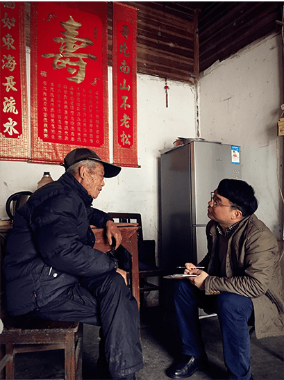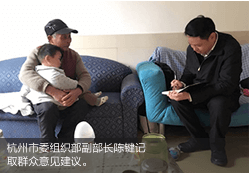 杭州市人大民宗僑外事工委副主任聶江傾聽老黨員心聲。