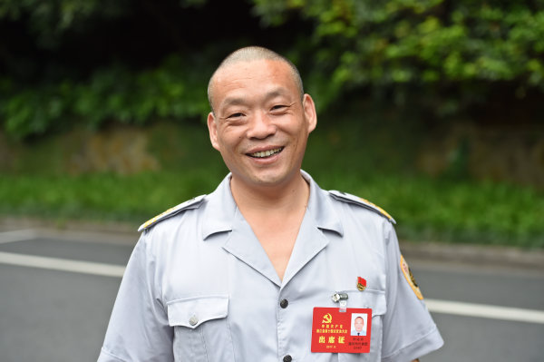 溫州市代表團(tuán)的代表許延林,是溫州101路駕駛員,開了21年的公交車,來到杭州開省黨代會,還是穿了一身“公交服”,本色不改。