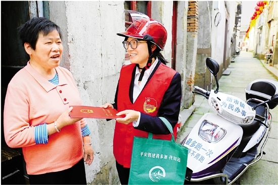 我省以“最多跑一次”改革撬動各方面各領域改革。圖為日前德清縣新市鎮行政服務中心不動產登記窗口工作人員陳萍(右)上門將不動產權證送到居民手上。拍友 王正 虞高嵐 攝