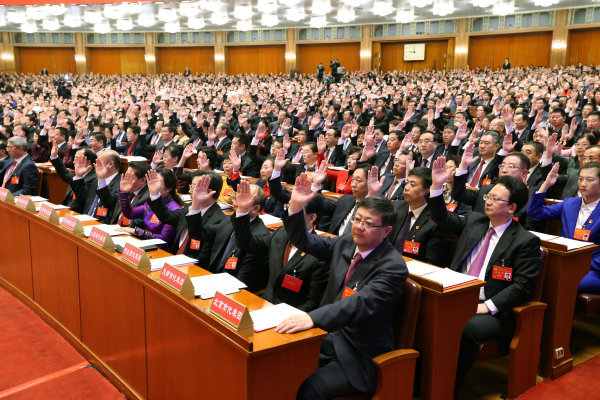 24日12時(shí)8分,在人民大會(huì)堂萬(wàn)人大禮堂璀璨穹輝下,出席十九大閉幕會(huì)的2300多名代表和特邀代表,莊嚴(yán)舉手表決——