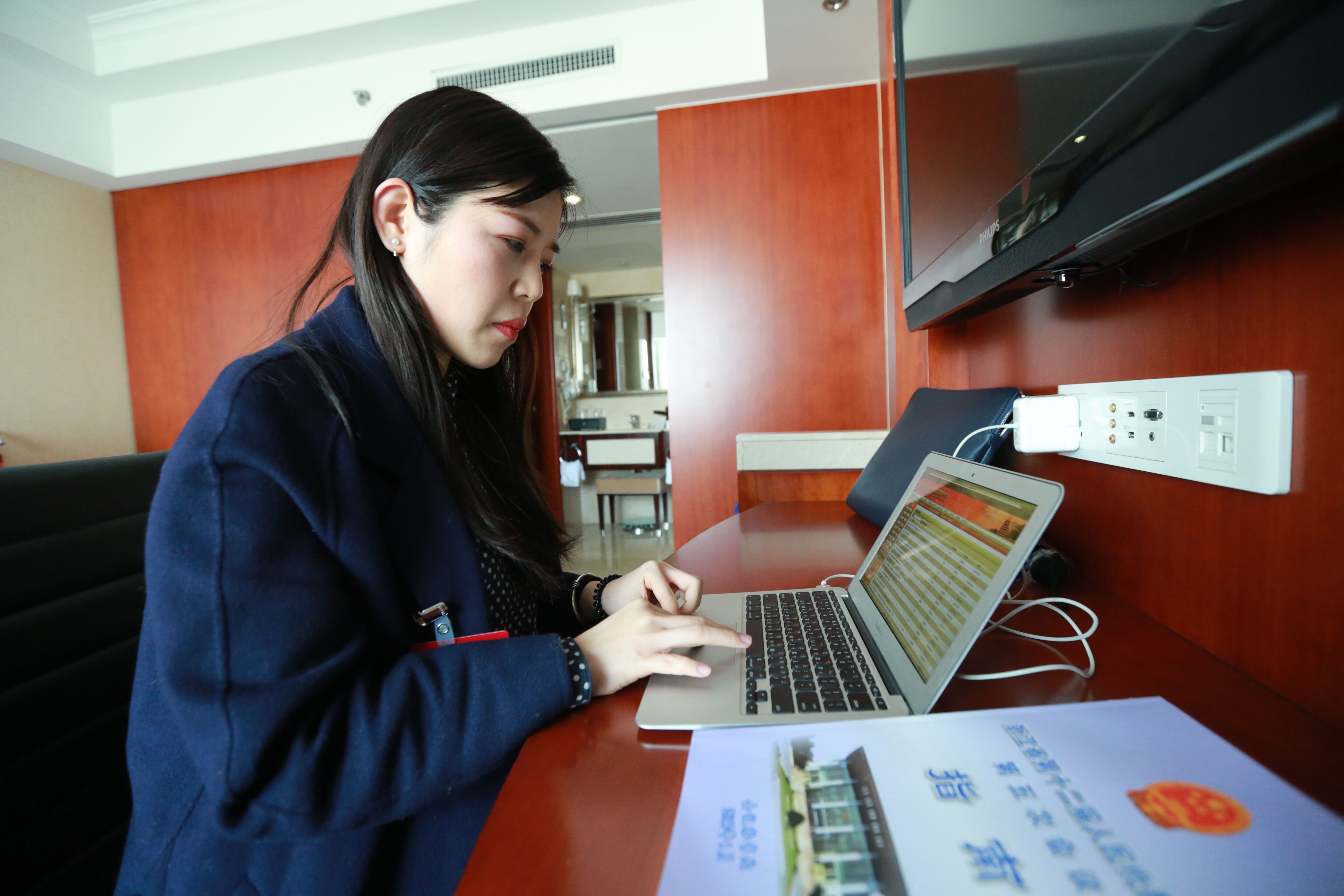 省人大代表孫陽辦完報到手續后登錄網上履職平臺開始工作。