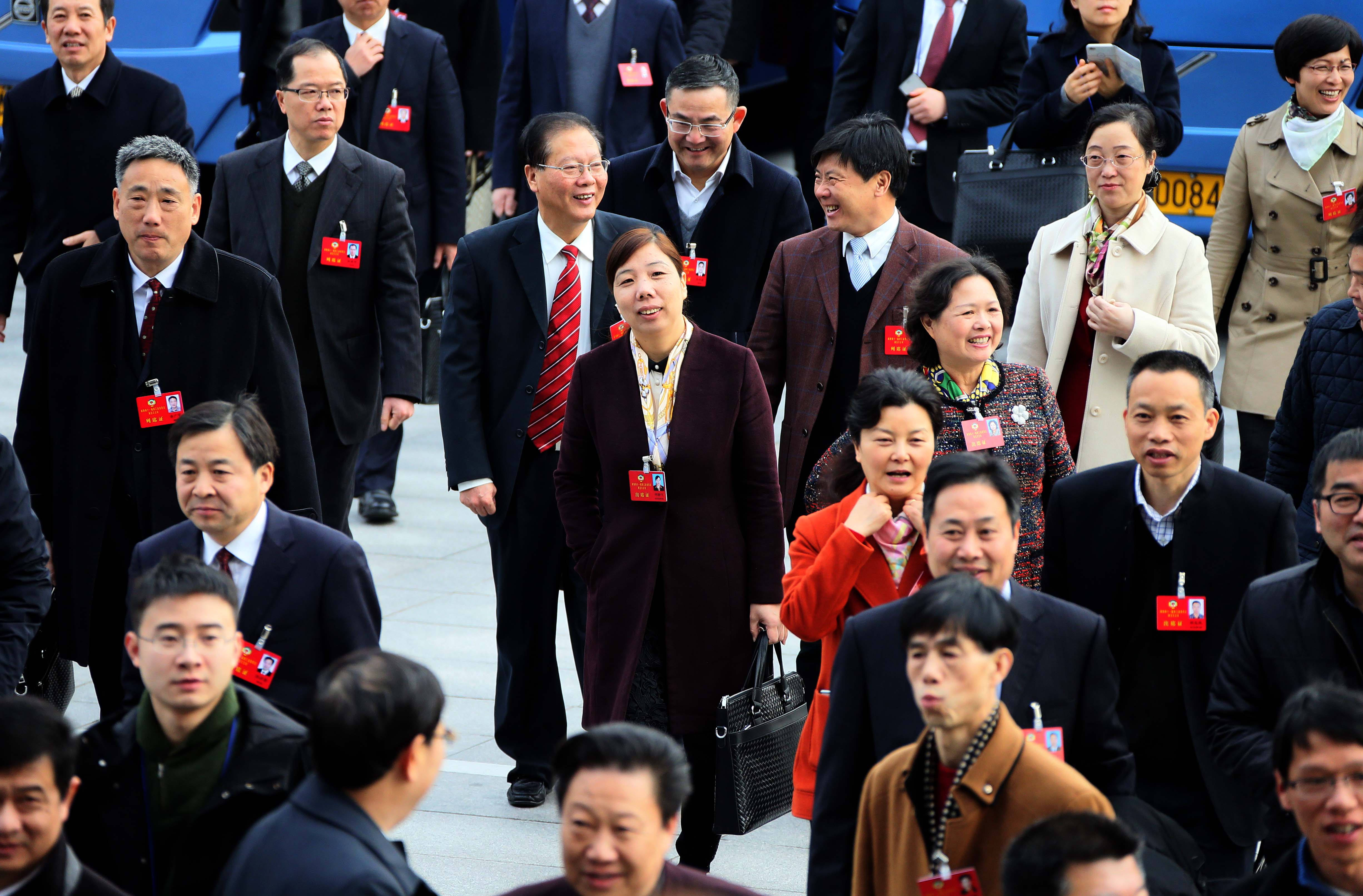 1月15日上午9點,浙江省政協十一屆五次會議在省人民大會堂開幕。政協委員們滿懷信心步入會場。浙江日報記者 吳煌 攝