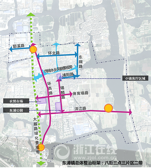整治戶外線纜。重點開展環西路、環北路戶外線纜整治,積極推進線纜“上改下”工程,在此基礎上,逐漸推進洋江西路、浦陽路、東稠路空中線纜整治。改造農貿市場。結合大越路拆遷,整治農貿市場西立面,重點提升整治南側市場區域;拆除東部沿河搭建房,開辟停車空間。整治道路交通空間。完善道路交通,重點完善環西路、環北路、東稠路人行道功能,拓寬洋江西路人行道。整治占道經營、占道建設、占道停車等現象。整治環境衛生。進一步加強集鎮衛生保潔和秩序管理,購置必要的環衛設施和管理裝備,提升城鎮環境衛生管理水平。