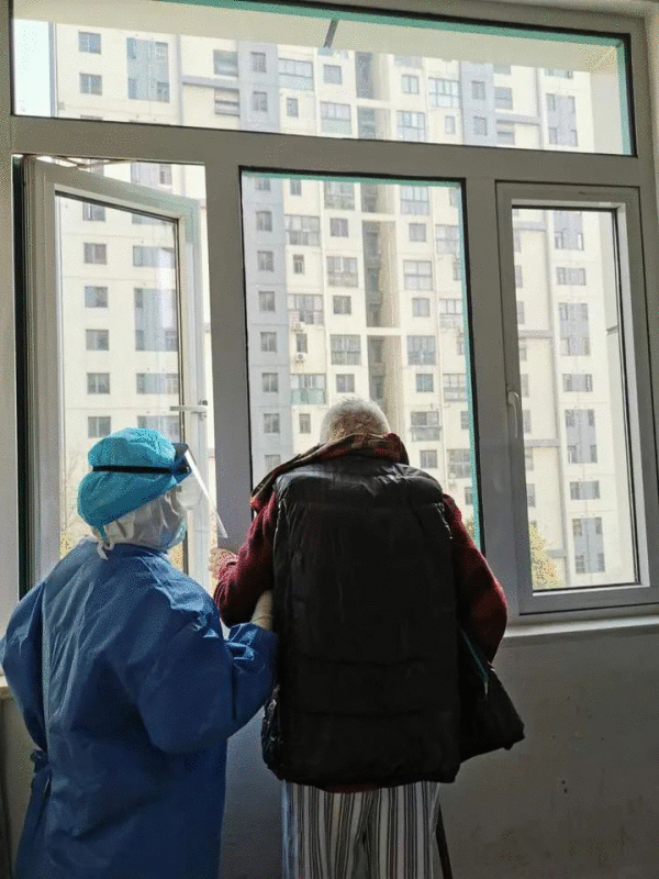 相差74歲的一老一少站在窗邊“找春天”,殊不知自己已成了春日里最美好的一道風(fēng)景。一旁的同事默默拿起工作手機(jī),拍下了令人動(dòng)容的這一幕。