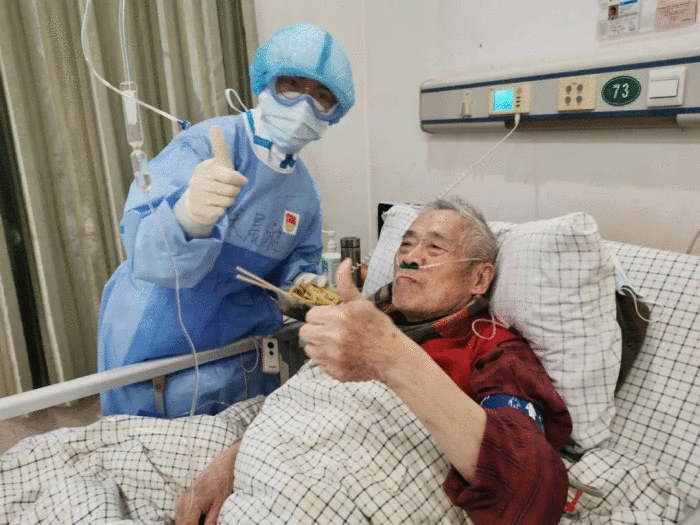 還有什么辦法能喚醒老夫妻沉睡已久的味蕾呢?老爺子雖然早早離開了家鄉(xiāng)象山,但講話仍帶著濃重的象山口音,沒準(zhǔn)兒還保留著一個(gè)“寧波胃”。在物資緊張的疫區(qū),做一頓正宗的東海小海鮮是不可能的。他們只能請(qǐng)酒店的廚師做點(diǎn)寧波口味的面條,再帶去醫(yī)院。面條簡(jiǎn)簡(jiǎn)單單,沒有豐富的海鮮澆頭,但有醫(yī)護(hù)人員滿滿的心意。