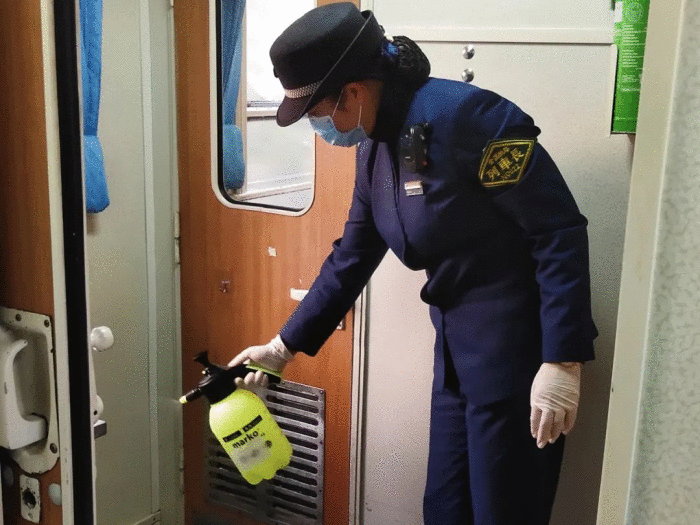 “旅客體溫37.9度。”傅林琳頓感事態嚴重,立即將旅客帶至13車放空車廂進行隔離,經詢問得知,該名旅客有武漢人員接觸史,傅林琳的心一下子提到嗓子眼。她馬上對旅客進行了心理安慰和防護指導,并及時安排人員對旅客所在車廂進行全方位消毒。同時,她向成都局客調匯報了情況并聯系梁平站做好交接事宜。后經醫院診斷,該旅客只是普通發燒感冒,傅林琳懸著的心才終于放下,而她妥善的應急處置,也贏得了旅客們的一致贊賞。