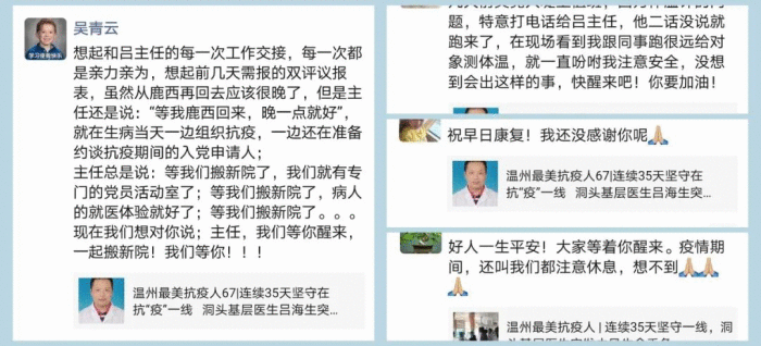 因為在抗疫中的擔當作為,呂海生獲得洞頭區委、區政府的表揚。當時,呂海生馬上說,“這個榮譽屬于大家!”3月6日,呂海生被授予為洞頭區“百島先鋒”優秀共產黨員榮譽稱號,3月7日,呂海生又獲評“最美溫州人”榮譽稱號,這次,他卻未能說出一句話。