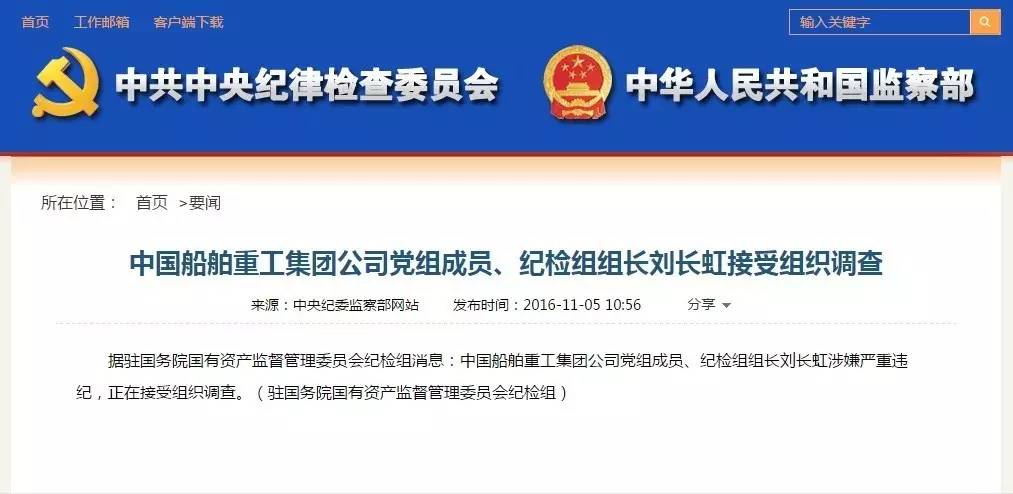 這一次,劉長虹步了王立新的后塵,而他的落馬更為常規化。11月5日上午,劉長虹的名字出現在國資委網站和中央紀委網站上。同日,他在中國船舶重工集團公司和中國船舶重工股份有限公司(劉長虹任該公司監事會主席)網站上的個人信息已被撤下?!?/p>