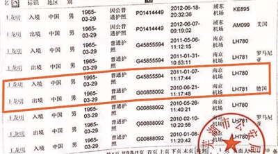 出入境記錄顯示2010年6月21日至2011年1月7日王龍明在境外