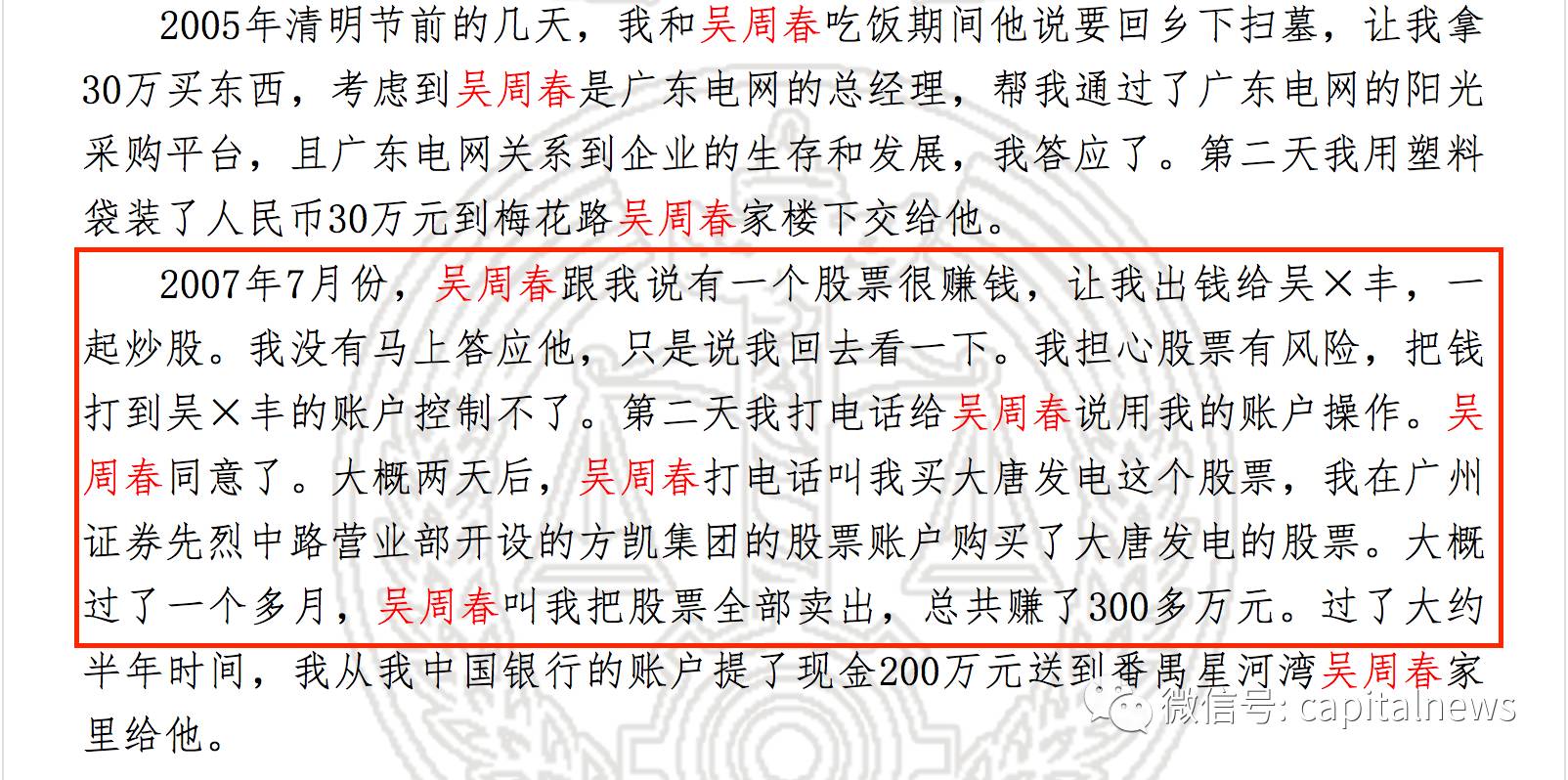 廣東電網公司原總經理吳周春,為規避風險最常用的斂財手段就是所謂借錢炒股、合伙炒股。他以某只股票將會升值為由,要求關系戶借錢給他兒子炒股,而事實上一概由關系戶全資入市,贏則大部分歸己,被套牢或虧損則不承擔任何責任。曾有一次,吳通過內部渠道獲知一家股票將在短期內上漲,聯系電器公司老板陳某,以兒子炒股缺少資金為由要求陳某出資支持,最終股票收益300萬元,吳獲取了其中的200萬元。通過這種方式,吳獲利超過千萬。