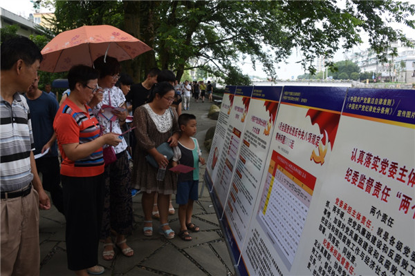 圖為黨員、群眾在反腐倡廉建設工作展板前駐足觀看。